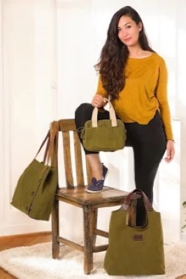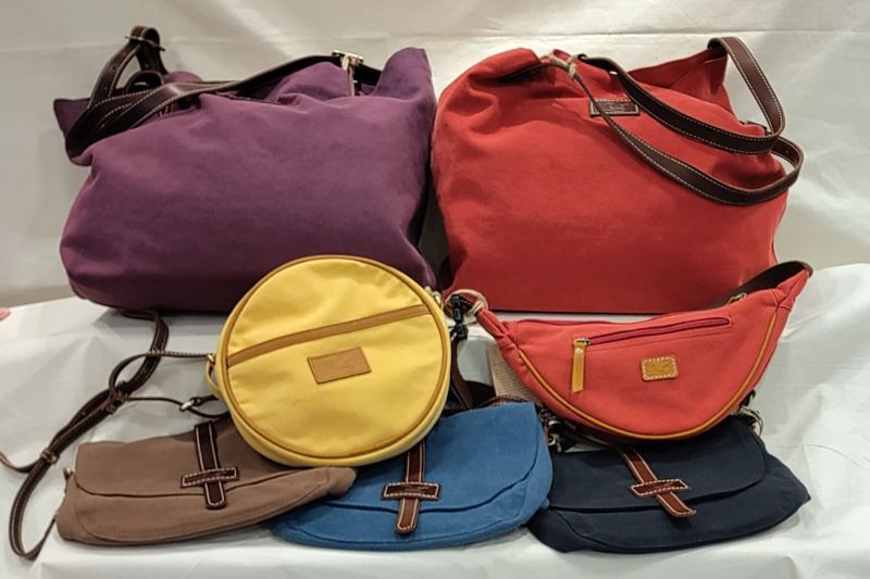 Die Taschen (Shopper, Umhängetaschen, Schultertaschen, Rucksäcke & Slingbags, Messenger- & Hüfttaschen, Kleintaschen & Börsen und ganze Kollektionen - s. kleines Foto links) bestehen vollständig aus 100 % Baumwolle in Canvas-Qualität, auch bekannt als Segeltuch. Das Innenfutter besteht aus leichter Baumwolle.