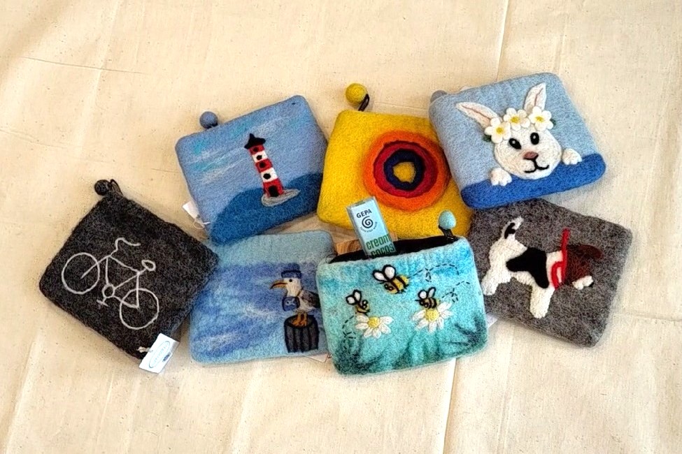 Die Filztäschchen sind wahre Alleskönner. Sie eigenen sich zur Aufbewahrung von Kosmetikartikeln, Schmuck oder kleinen Schätzen, wie Muscheln aus dem letzten Urlaub. Bei ihren vielfältigen Designs findet jeder ein Lieblingsstück. Die handgefertigten Täschchen bestehen aus 100% Wolle und sind mit einem Baumwollstoff gefüttert.