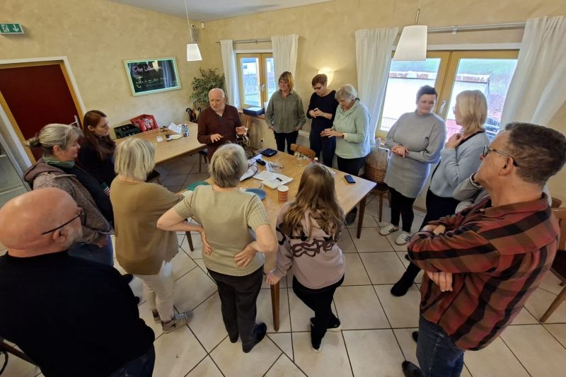 Die seit Sommer 2025 mittlerweile 5. Schokoladen-Werkstatt des Weltladens Groß-Umstadt fand am Sa., 17.1.2026, in Raibach statt. Interesse angemeldet hatte die „Dorf Arbeitsgemeinschaft Raibach e.V.“, und gekommen waren 14 Teilnehmerinnen und Teilnehmer.